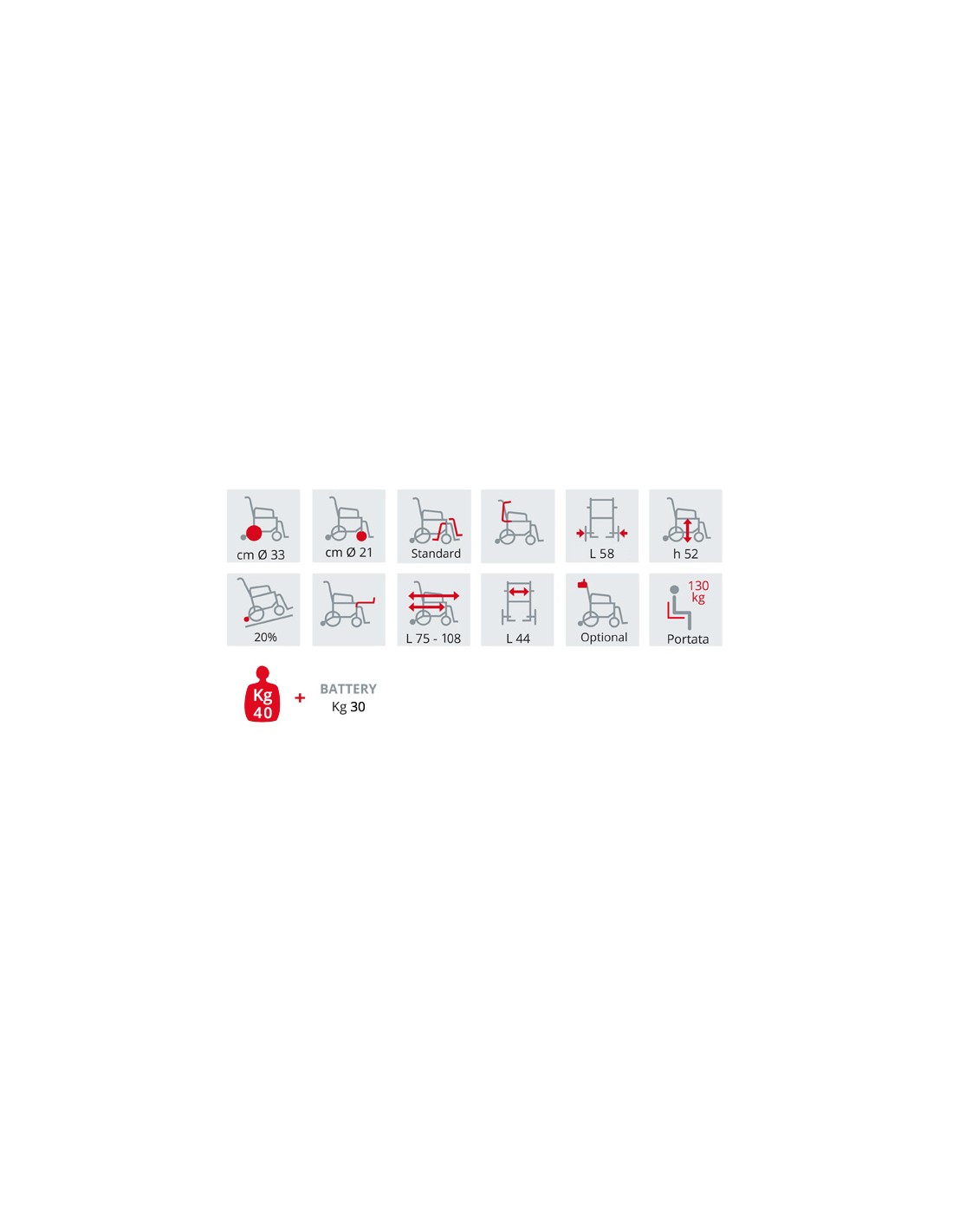 • Peso prodotto: 40 kg + Batteria 28 kg