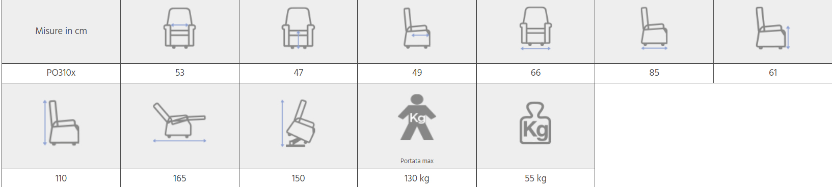 • Portata massima: 130 Kg